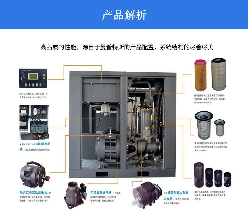 空氣壓縮機作為一種先進、成熟的清潔生產(chǎn)技術(shù)和裝備,廣泛應(yīng)用在鋼鐵、石油、電器、飼料、醫(yī)藥制造、化工、電廠、印刷、食品等眾多領(lǐng)域。與第一代活塞空氣壓縮機和第二代螺桿式空氣壓縮機相比,曼普特斯永磁變頻空氣壓縮機傳動零損失,效率100%,更節(jié)能,更省電!
